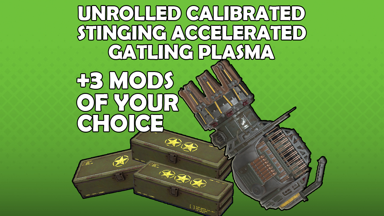 Unrolled Calibrated Stinging Accelerated Gatling Plasma +3 Legendary Mods of your choice 4in1 Bundle
