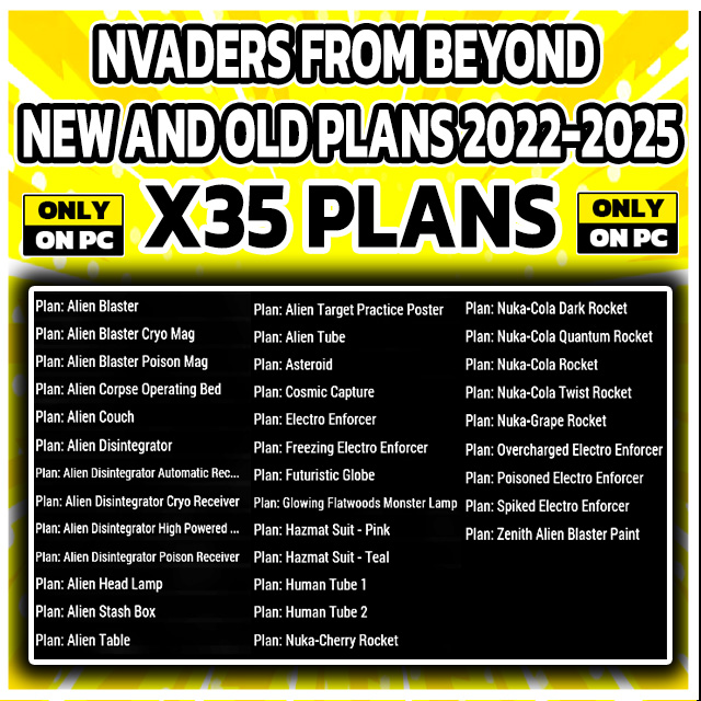 Alien Couch Futuristic Globe Hazmat Suit - Pink Nuka-Cherry Rocket Nuka-Cola Dark Rocket Nuka-Cola Quantum Rocket Nuka-Cola Rocket Nuka-Cola Twist Rocket Nuka-Grape Rocket ・Invaders From Beyond (Spring 2024): Alien Head Lamp Alien Table Alien Target Practice Poster Glowing Flatwoods Monster Lamp Hazmat Suit - Teal Zenith Alien Blaster Paint ・Invaders From Beyond (Spring 2022): Alien Blaster Alien Blaster Cryo Mag Alien Blaster Poison Mag Alien Corpse Operating Bed Alien Disintegrator Alien Disintegrator Automatic Receiver Alien Disintegrator Cryo Receiver Alien Disintegrator High Powered Receiver Alien Disintegrator Poison Receiver Alien Stash Box Alien Tube Asteroid Electro Enforcer Freezing Electro Enforcer Human Tube 1 Human Tube 2 Overcharged Electro Enforcer Poisoned Electro Enforcer Spiked Electro Enforcerq