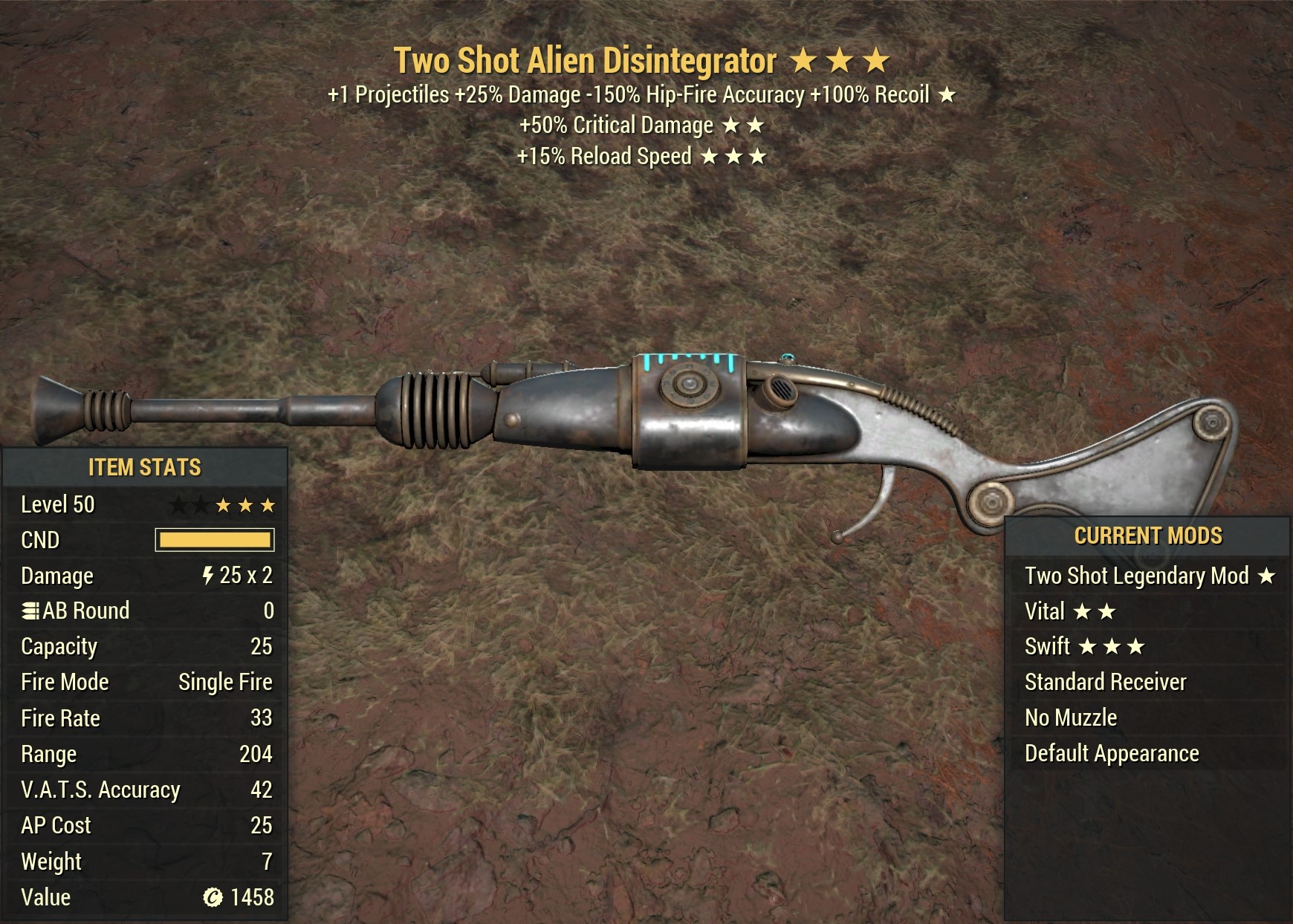 Two Shot Alien Disintegrator [+50% critical damage/15% faster reload]