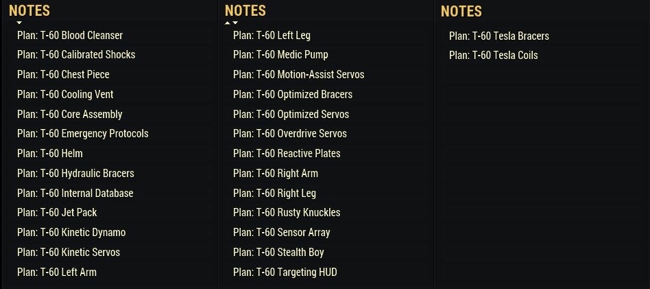 Includes the plans for the power armor itself and its mods.