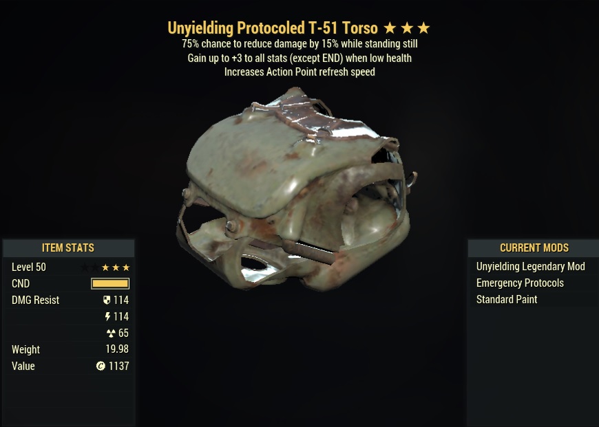 [PC] Unyielding Sentinel T-51 Power Armor Set (5/5 AP refresh)