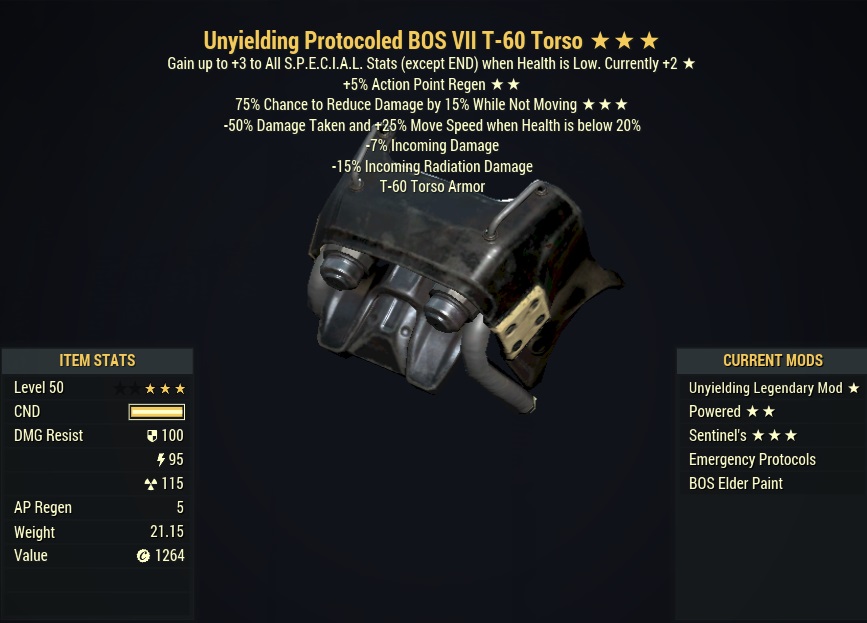 [PC] Unyielding Sentinel T-60 Power Armor Set (5/5 AP refresh)