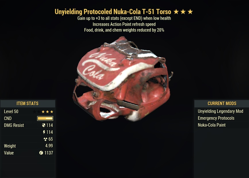 [PC] Unyielding T-51 Power Armor Set (5/5 Food, Drink, and Chem Weights Reduction) (5/5 AP refresh)