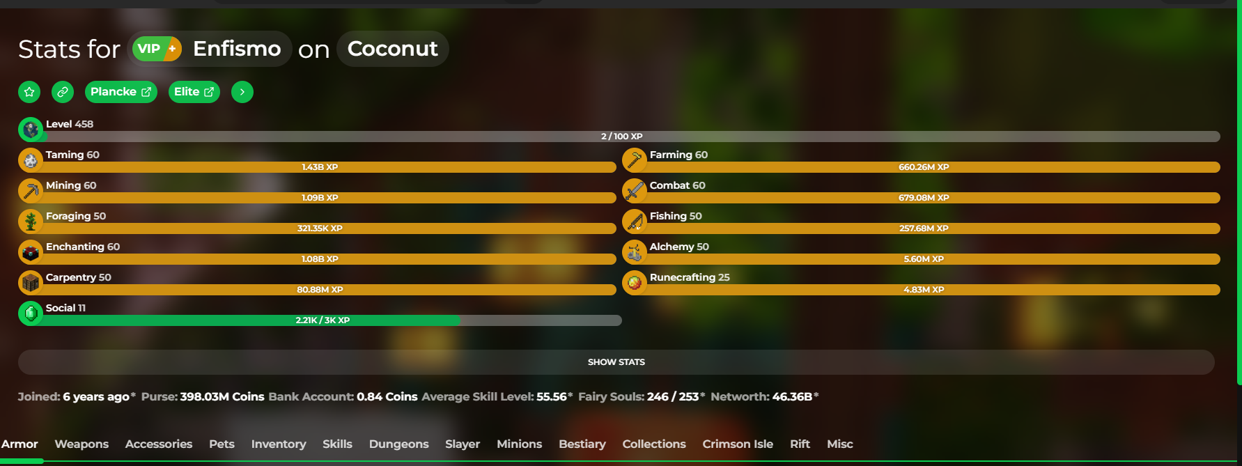 ✅ stats: https://sky.shiiyu.moe/stats/Enfismo