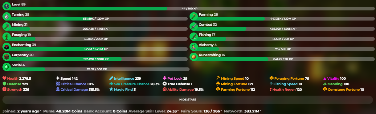 ✅❗️Solo-Coop | VIP+ | 89 SB lvl | 24.33 AVG | Cata 28 | 383.2M NW | Full accept | Hypixel SkyBlock❗️✅