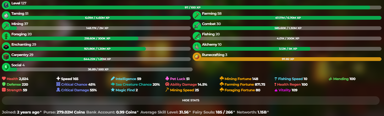✅❗️Solo-Coop | Farming 58 | 127 SB lvl | 31.56 AVG | 1.15B NW | Full accept | Hypixel SkyBlock ❗️✅