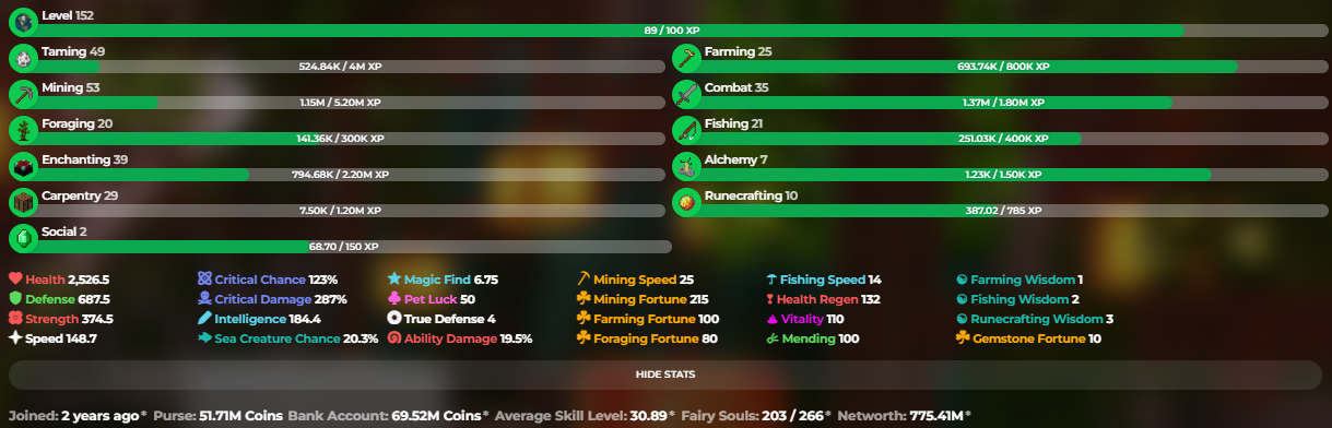 ✅❗️Solo-Coop | MVP+ | 152 SB lvl | 30.89 AVG | Cata 27 | 743.52M NW | Full accept | Hypixel SkyBlock❗️✅