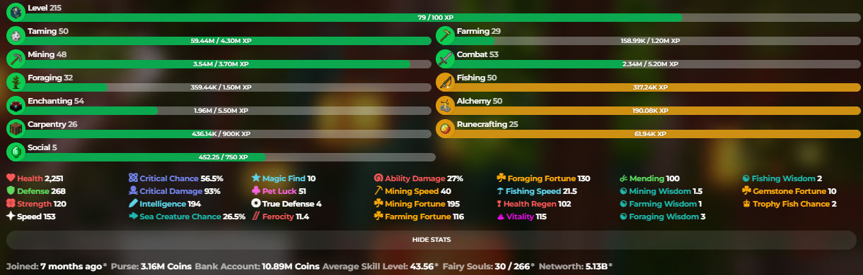 ✅❗️Solo-Coop | Fishing 50 | 215 SB lvl | 43 AVG | Cata 38 | 5B NW | Full accept | Hypixel SkyBlock❗️✅