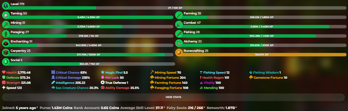 ✅❗️Solo-Coop | None | 179 SB lvl | 37.11 AVG | Cata 26 | 1.88B NW | Full accept | Hypixel SkyBlock❗️✅