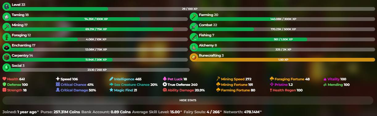 ✅❗️Solo-Coop | 33 SB lvl | 15.00 AVG | Cata 6 | 475.97M NW | Full accept | Hypixel SkyBlock❗️✅
