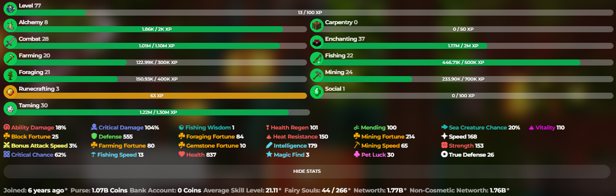 ✅❗️Solo-Coop | None | 77 SB lvl | 21.11 AVG | Cata 31 | 1.77B NW | Full accept | Hypixel SkyBlock❗️✅