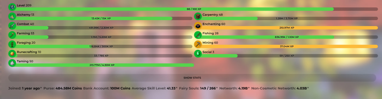 ☀️VIP | 209 SB LEVEL | 41 SA | 32 CATA | 10 HOTM | Slayers: 7/6/6/5/4 | 4B NW☀️