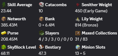 ✅❗️Solo-Coop | VIP | 68 SB lvl | 23.44 AVG | Cata 10 | 385.43M NW | Full accept | Hypixel SkyBlock❗️✅✅