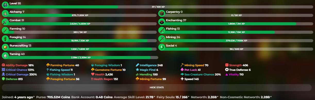 ✅❗️Solo-Coop | E. man 7 | VIP | 95 SB lvl | 21.78 AVG | Cata 29 | 2.35B NW | Full accept | Hypixel SkyBlock ❗️✅