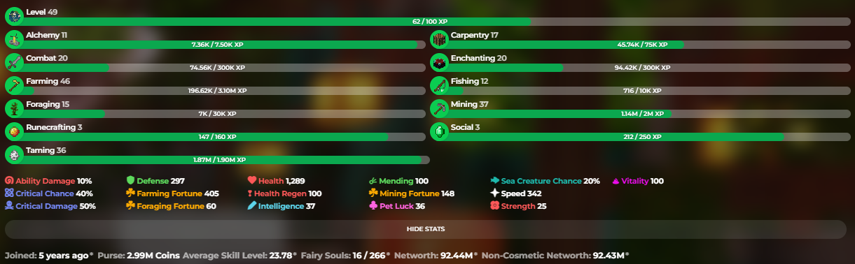 ✅❗️Solo-Coop | VIP | 49 SB lvl | 23.78 AVG | Cata 15 | 93.35M NW | Full accept | Hypixel SkyBlock❗️✅