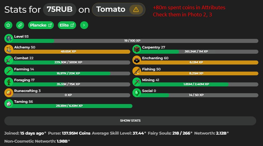 - Total NETWORTH is 2.20B COINS (2.19B UNSOULBOUND) (NOTICE: 80M coins in Attributes - check photo 2,3)