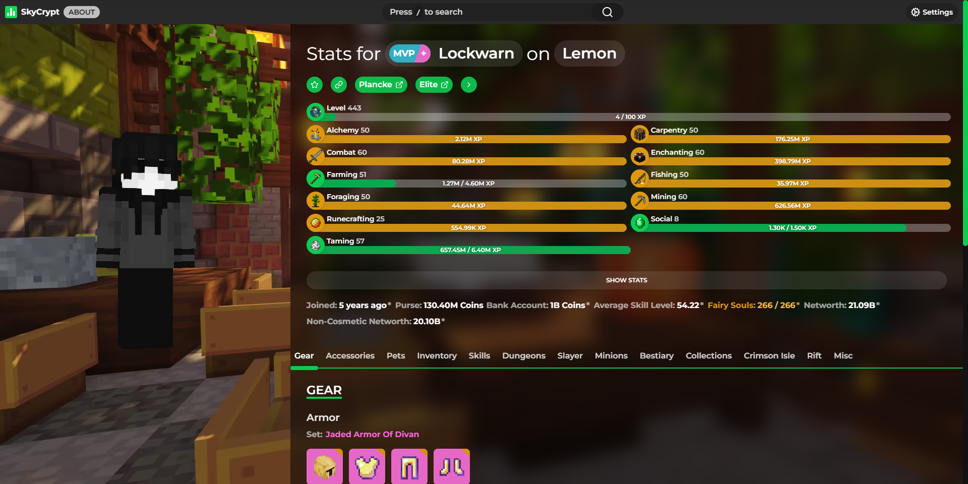 Detailed statistics - https://sky.shiiyu.moe/stats/Lockwarn/Lemon#Gear ⚡