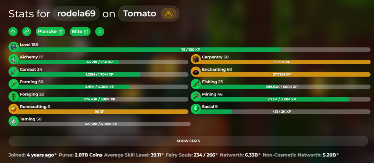 NICKNAME / PROFILE: rodela69 / https://sky.shiiyu.moe/stats/rodela69/Tomato#Gear