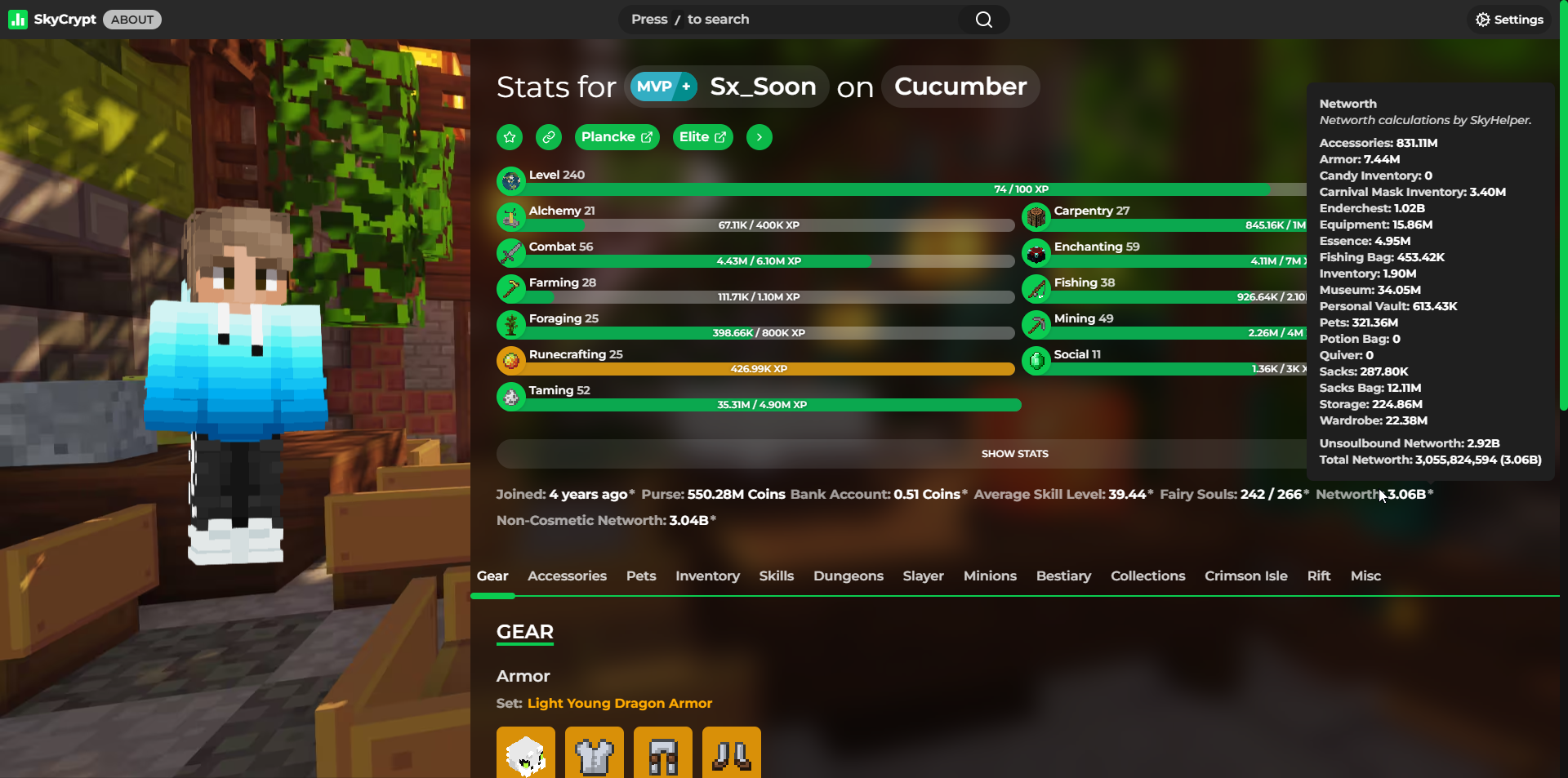 Detailed statistics - https://sky.shiiyu.moe/stats/Sx_Soon/Cucumber#Gear ⚡