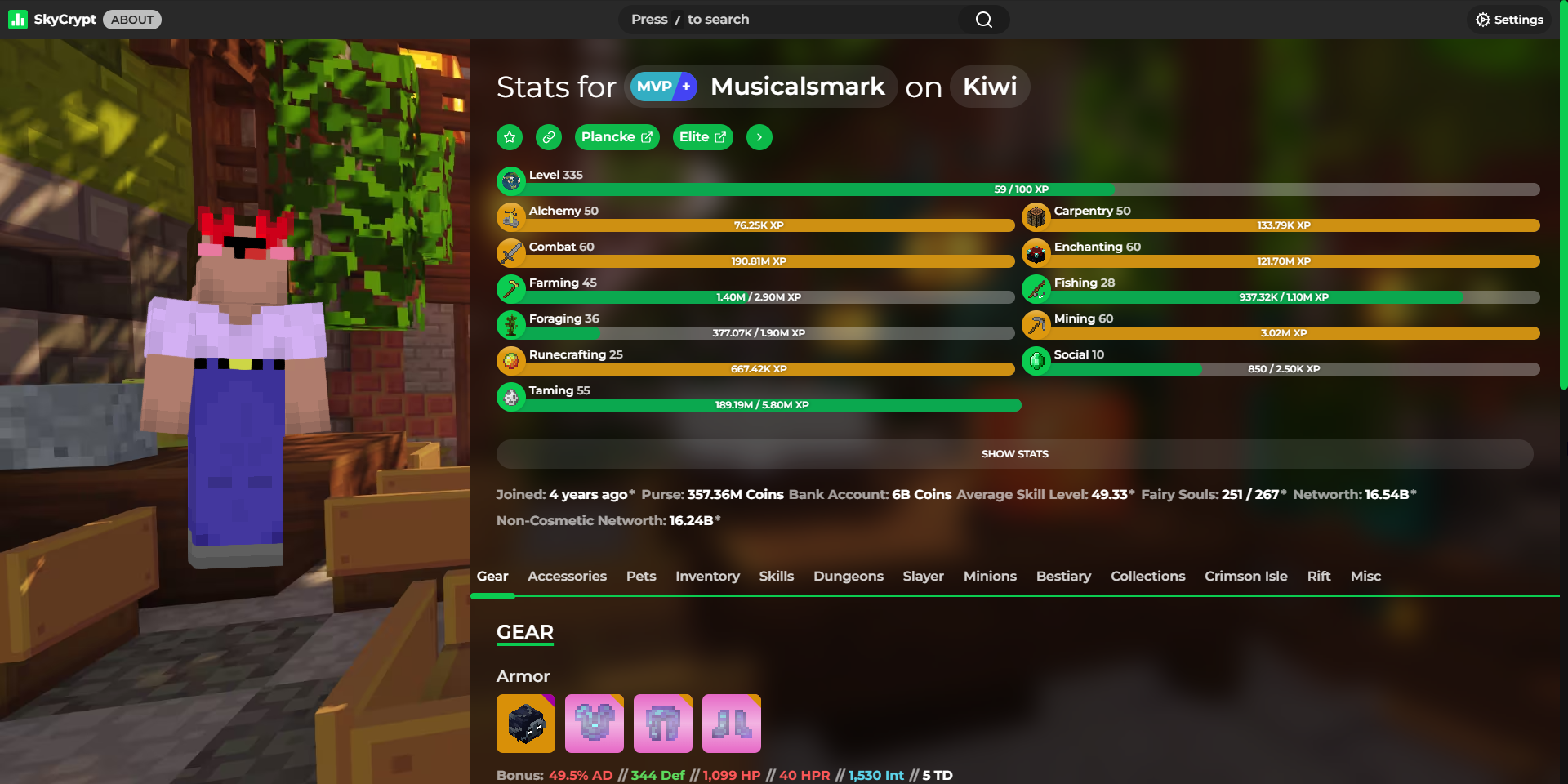 Detailed statistics - https://sky.shiiyu.moe/stats/Musicalsmark/Kiwi#Gear ⚡