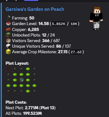 600m nw / 20 cata / 30 sa / 161 lvl sb / 5 hotm / 11 garden