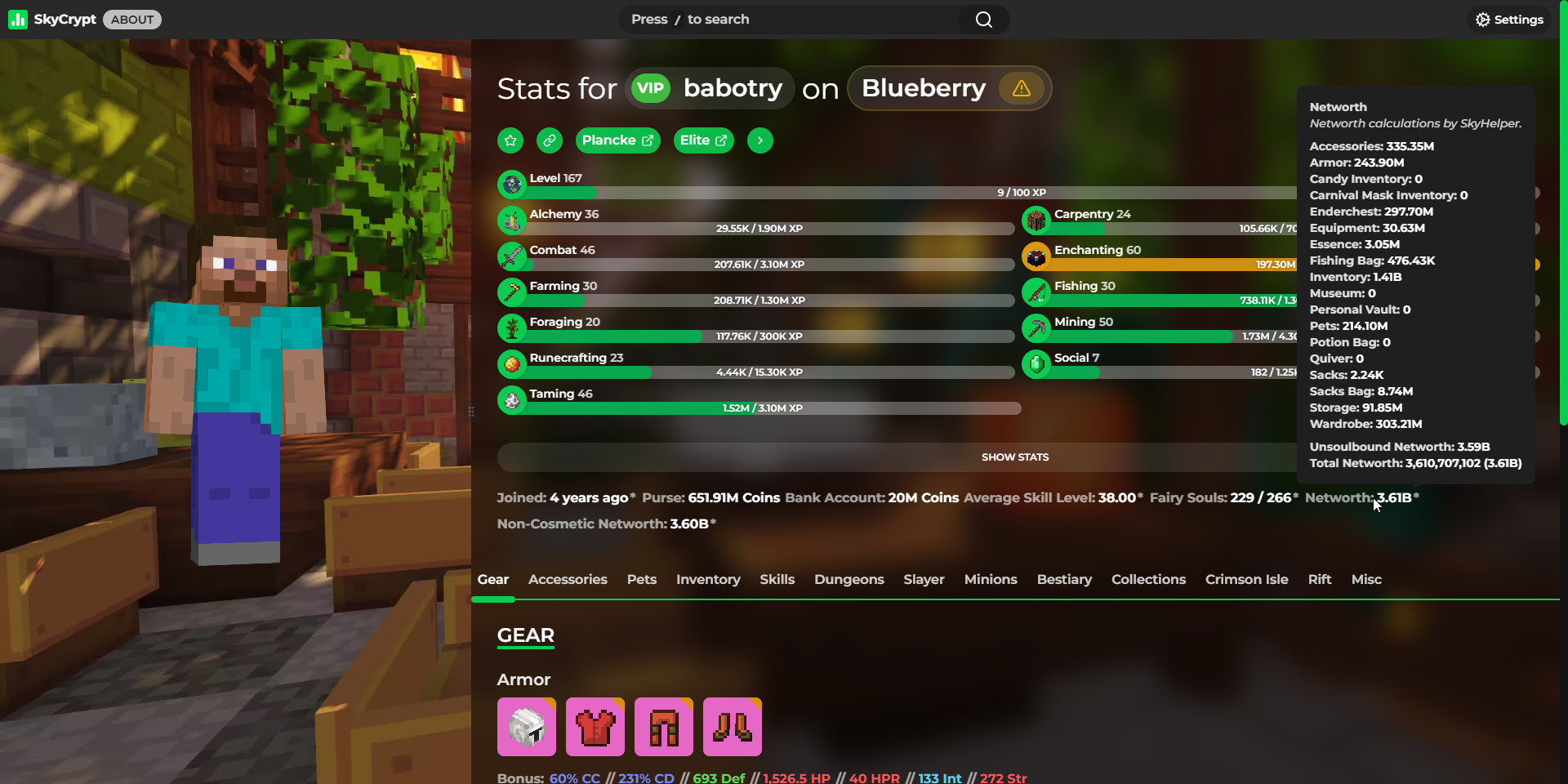 Detailed statistics - https://sky.shiiyu.moe/stats/babotry/Blueberry#Gear ⚡