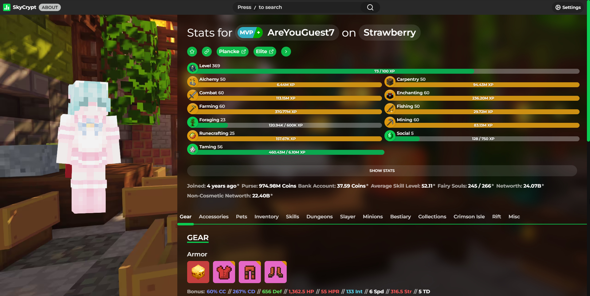 Detailed statistics - https://sky.shiiyu.moe/stats/AreYouGuest7/Strawberry#Gear ⚡
