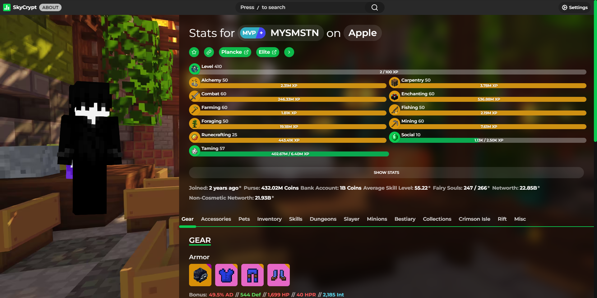 Detailed statistics - https://sky.shiiyu.moe/stats/MYSMSTN/Apple#Gear ⚡