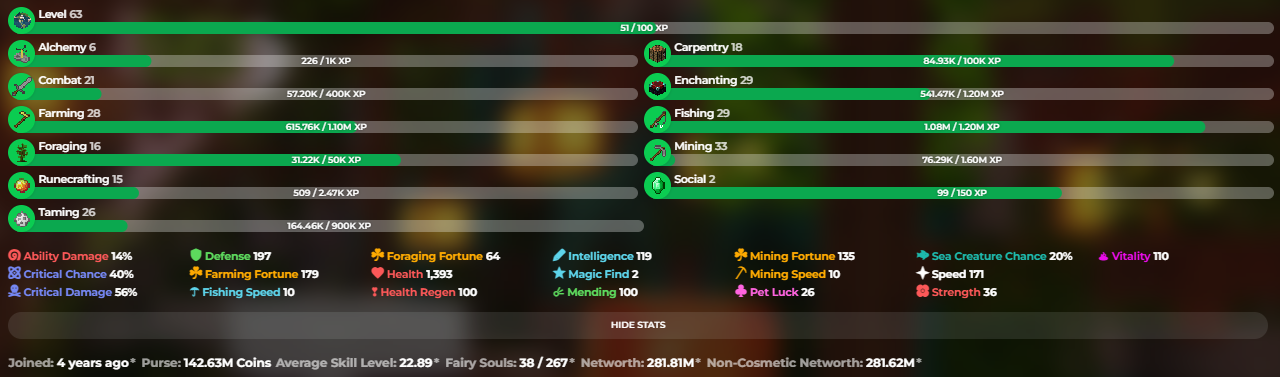 ✅❗️Solo-Coop | VIP | 63 SB lvl | 22.89 AVG | Cata 18 | 281.68M NW | Full accept | Hypixel SkyBlock❗️