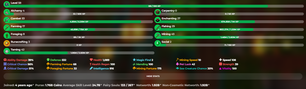 ✅❗️Solo-Coop | 58 SB lvl | 24.78 AVG | Cata 13 | 1.92B NW | Full accept | Hypixel SkyBlock❗️✅