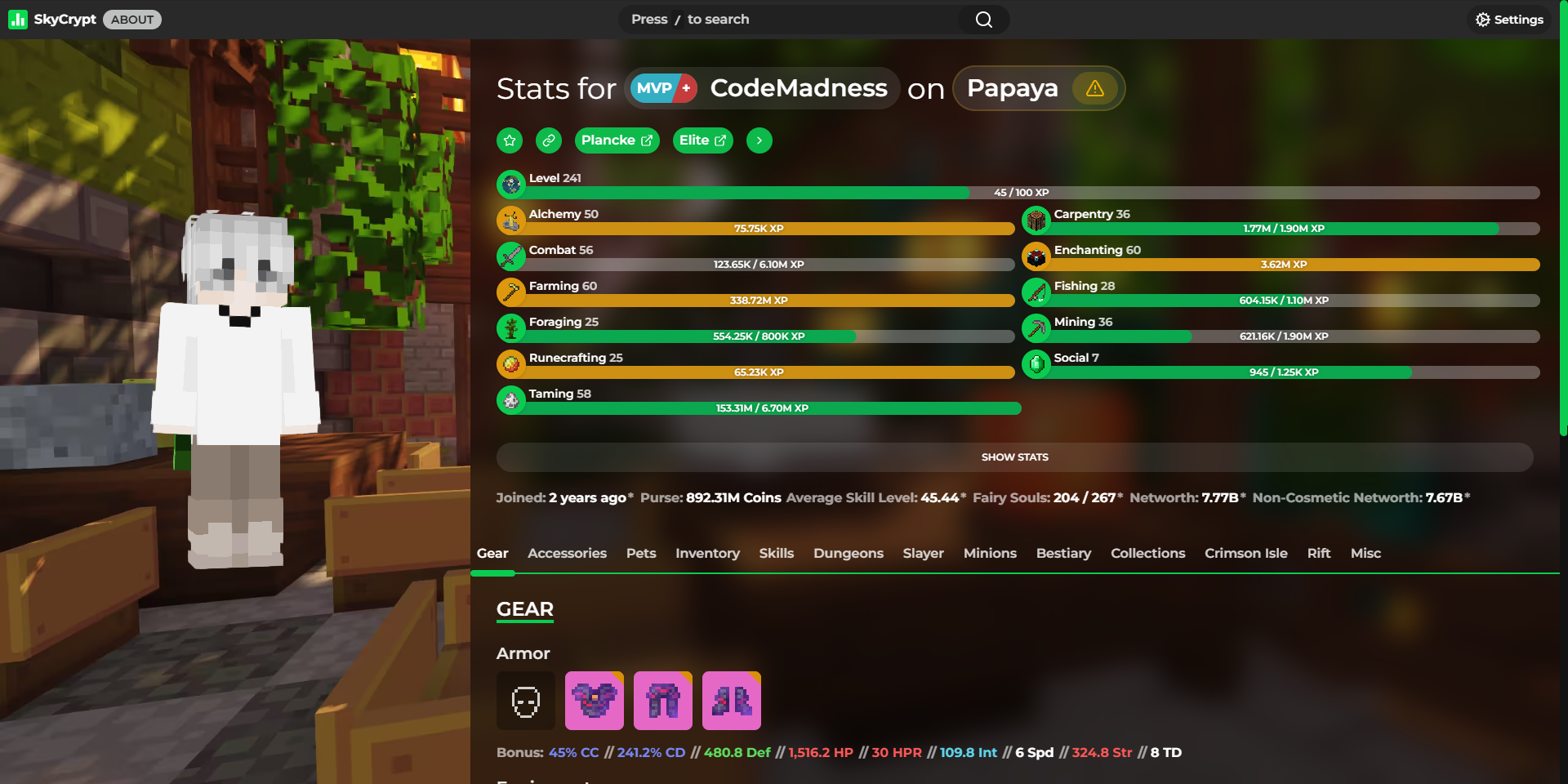 Detailed statistics - https://sky.shiiyu.moe/stats/CodeMadness/Papaya#Gear ⚡