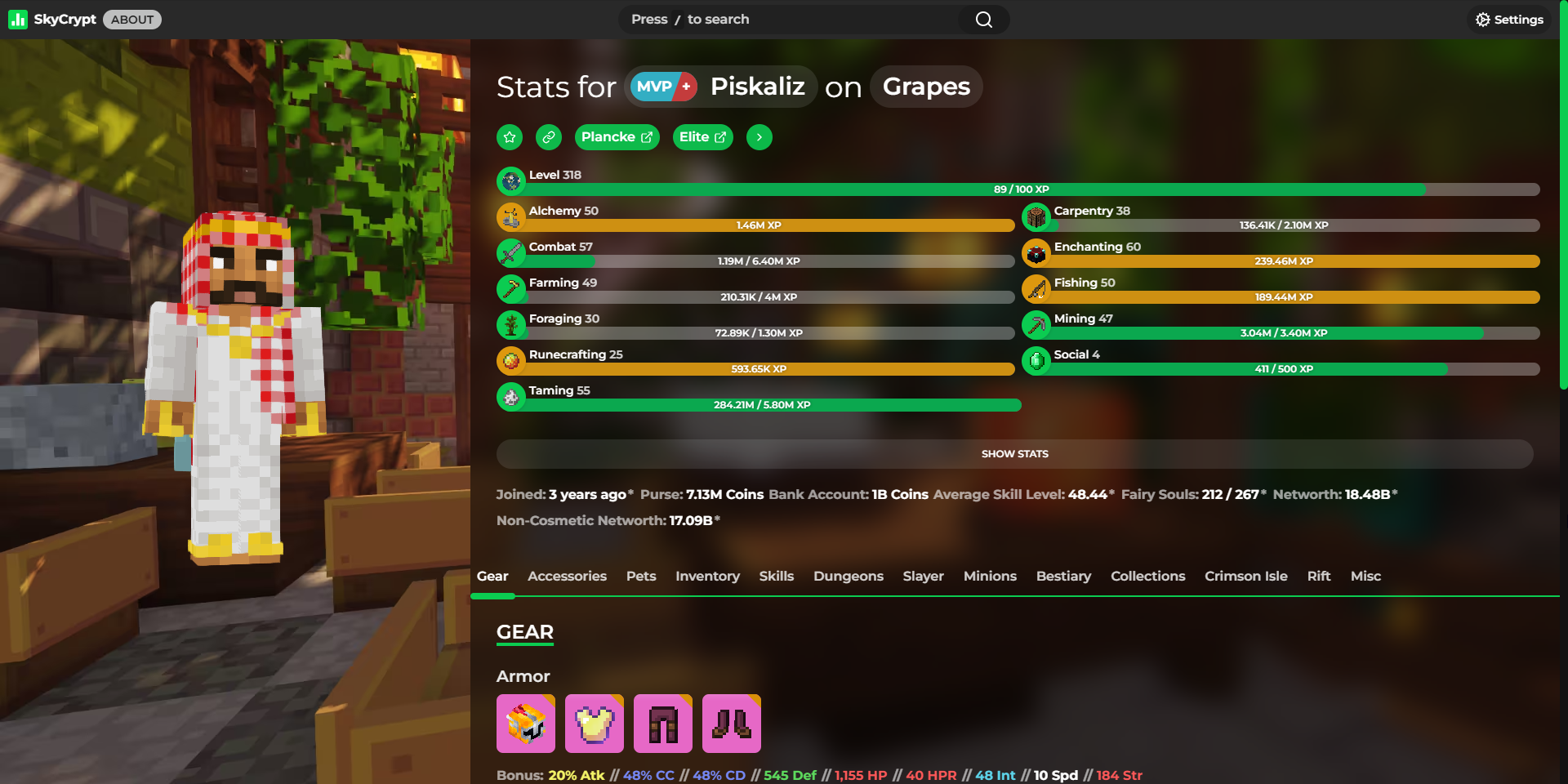 Detailed statistics - https://sky.shiiyu.moe/stats/Piskaliz/Grapes#Gear ⚡