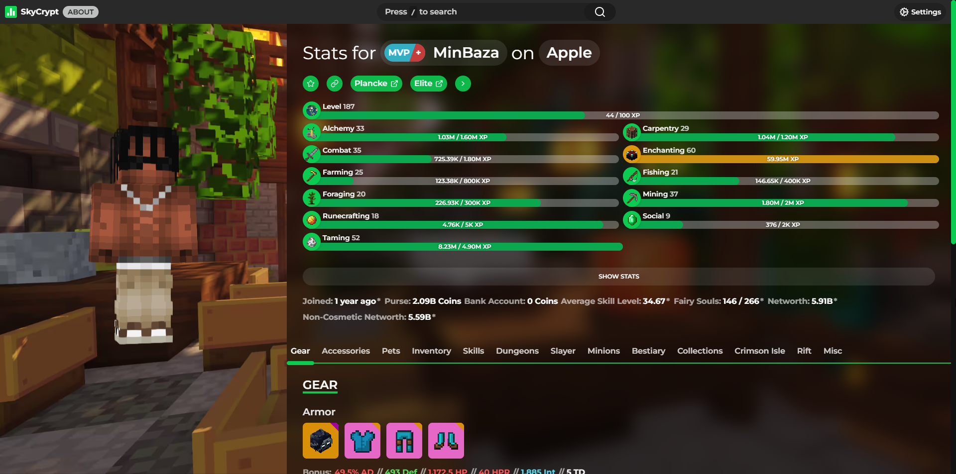 Detailed statistics - https://sky.shiiyu.moe/stats/MinBaza/Apple#Gear ⚡