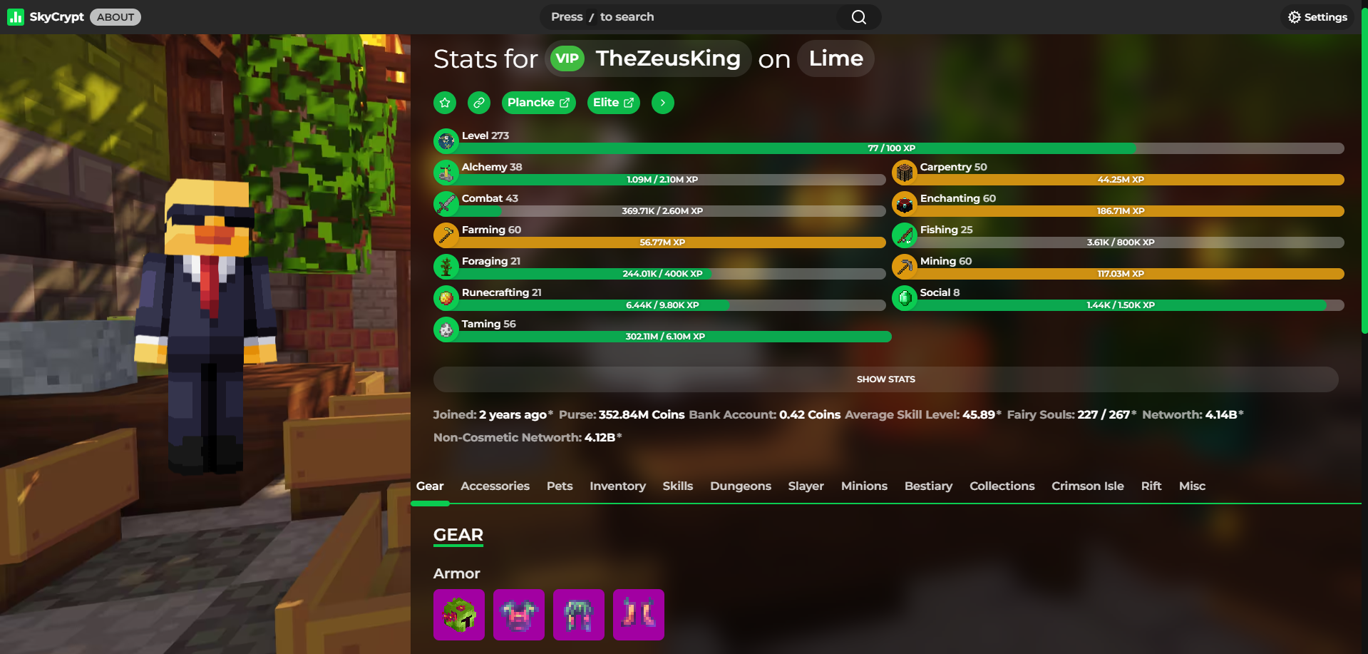 β‘ All account details can be changed right after payment β youβre the only owner. You can check full stats on - https://sky.shiiyu.moe/stats/TheZeusKing/Lime