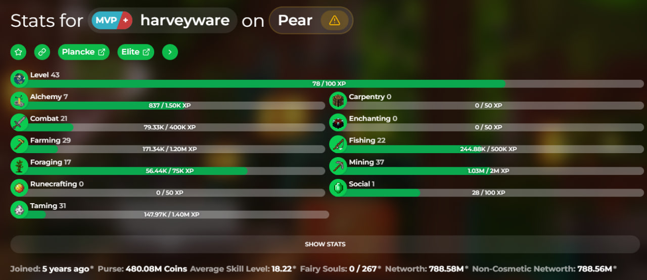 NICKNAME / PROFILE: harveyware / https://sky.shiiyu.moe/stats/harveyware/Pear#Gear