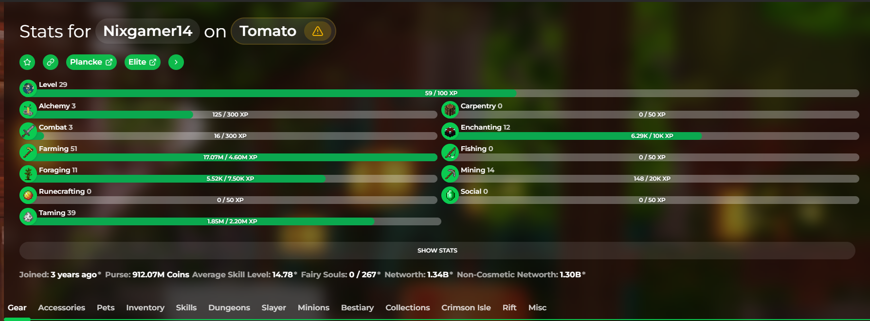✅ stats: https://sky.shiiyu.moe/stats/Nixgamer14