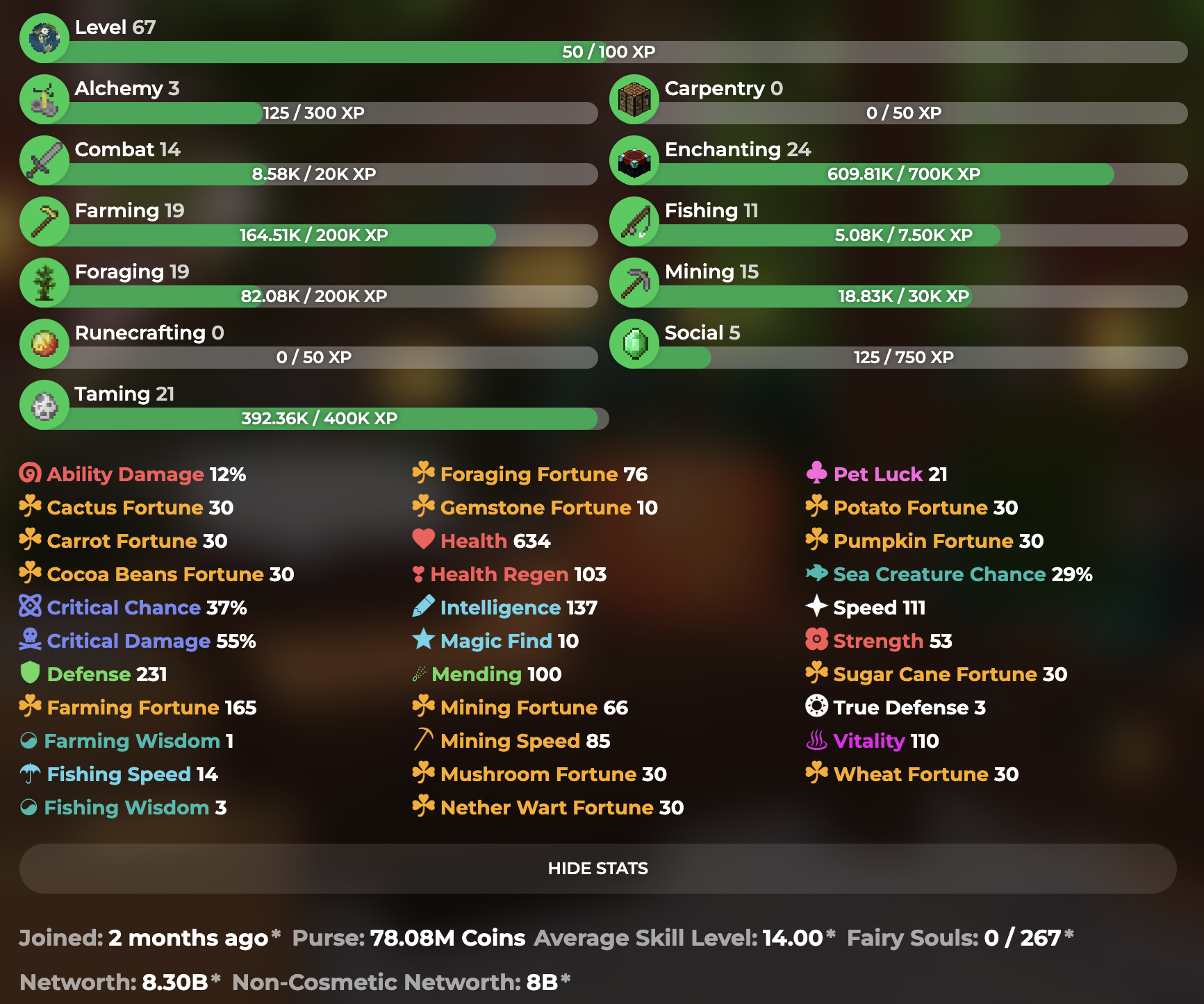 SkyBlock Lvl: 67.5