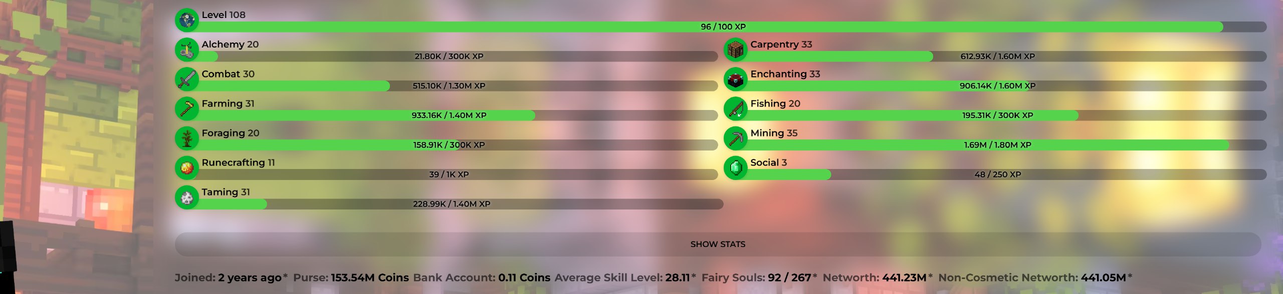 ☀️VIP | 108 SB LEVEL | 28 SA | 29 CATA | Slayers: 5/3/3/2 | 441M NW☀️