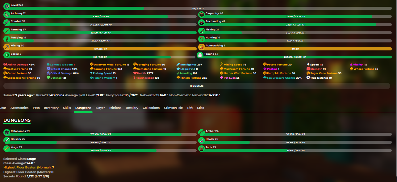 ❗️15,6b (15,5b unsoul) Networth❗️223 LvL Skyblock❗️29 Cata❗️Hypixel skyblock❗️
