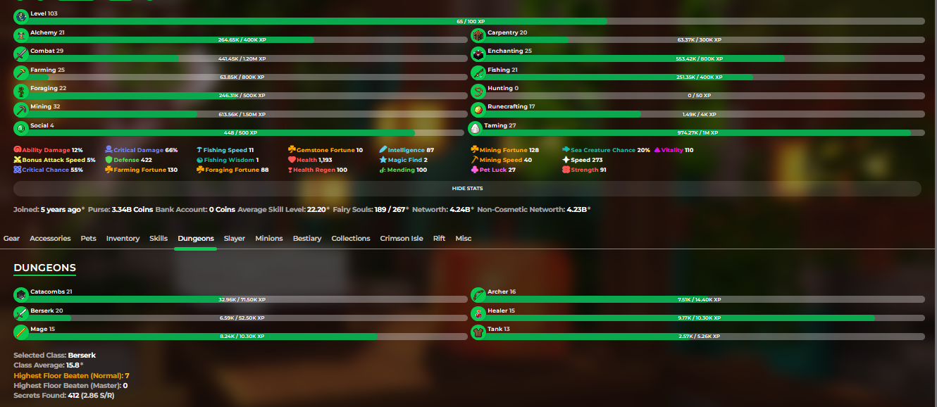 ❗️VIP+❗️4,24b (4,24b unsoul) Networth❗️103 LvL Skyblock❗️21 Cata❗️Hypixel skyblock❗️