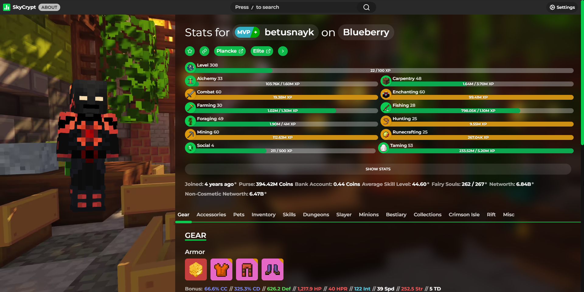 Detailed statistics - https://sky.shiiyu.moe/stats/betusnayk/Blueberry#Gear ⚡