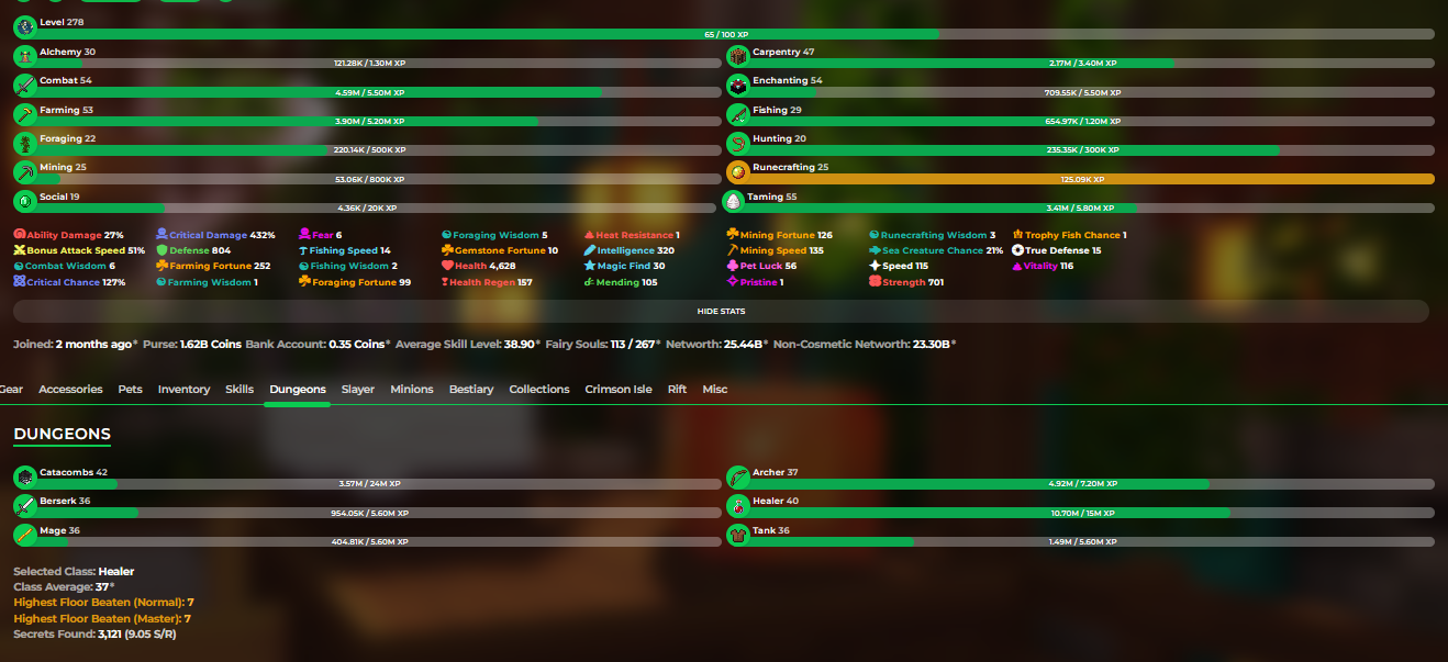 ❗️MVP+❗️25,5b (12b unsoul) Networth❗️278 LvL Skyblock❗️42 Cata❗️Hypixel skyblock❗️