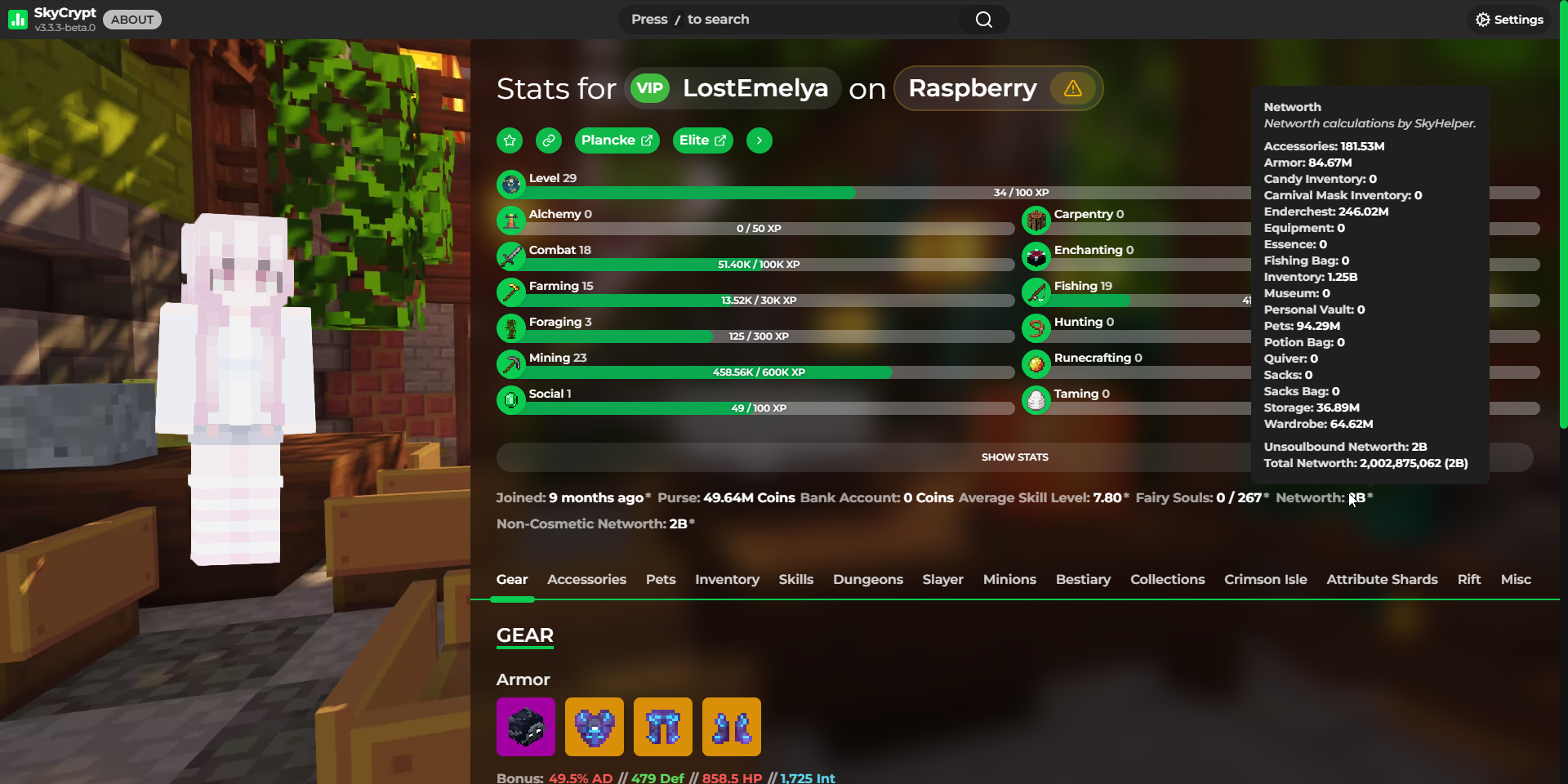 Detailed statistics - https://sky.shiiyu.moe/stats/LostEmelya/Raspberry#Gear ⚡