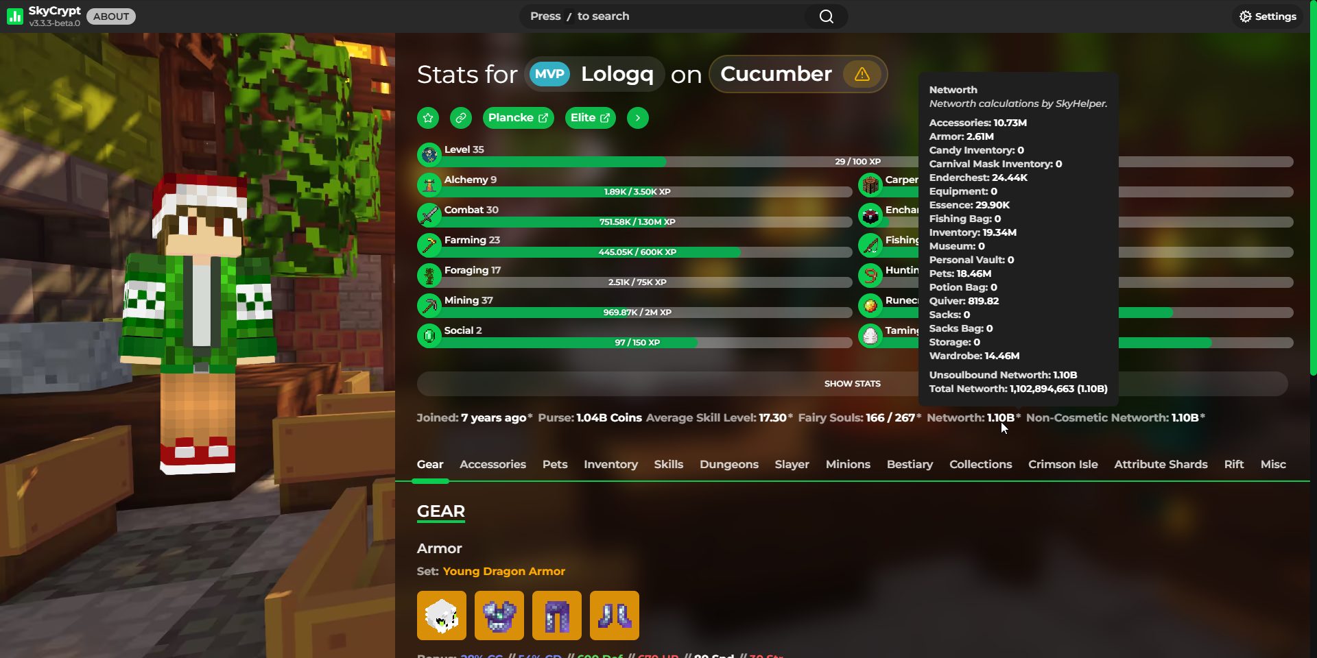 Detailed statistics - https://sky.shiiyu.moe/stats/Lologq/Cucumber#Gear ⚡