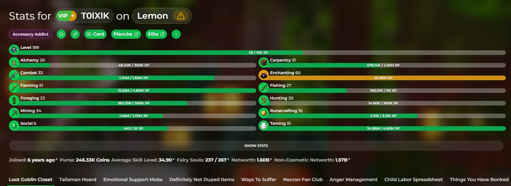 ✅ 189 Skyblock level