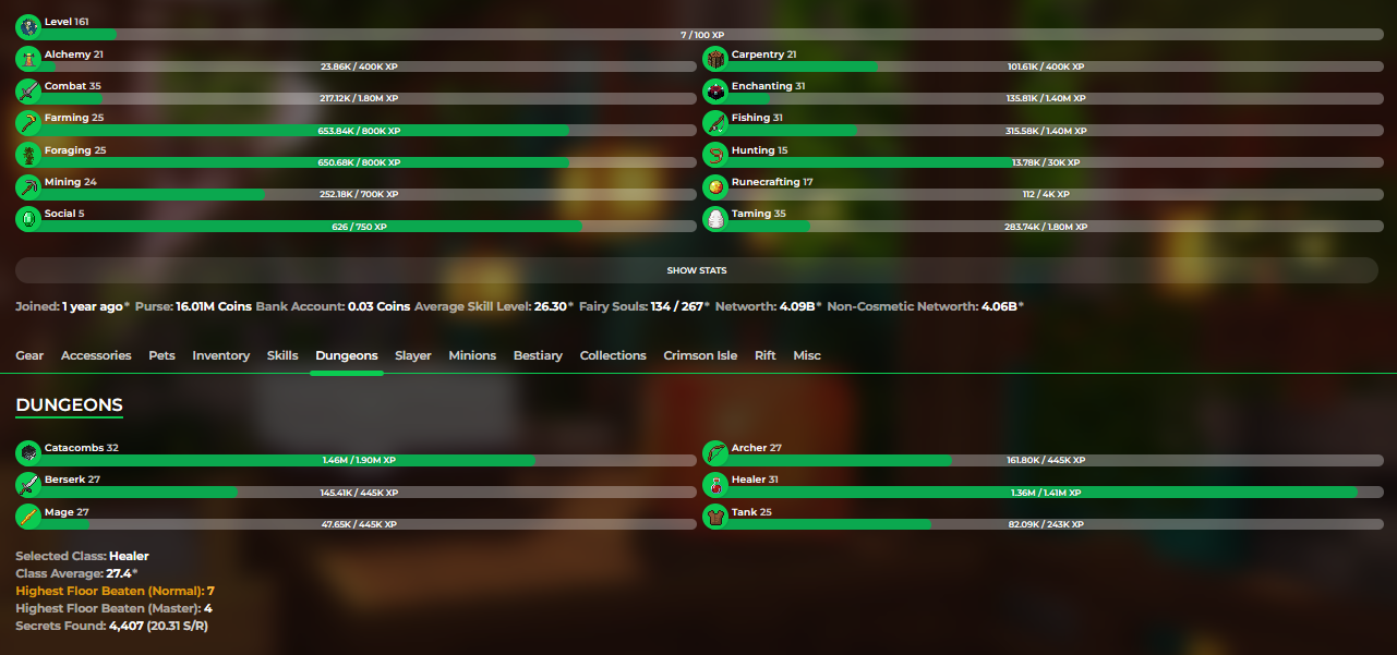 ❗️VIP❗️4,1b (711M unsoul) Networth❗️161 LvL Skyblock❗️32 Cata❗️Hypixel skyblock❗️