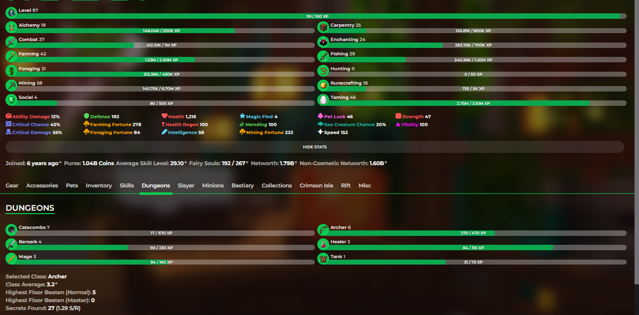 ❗️VIP+❗️1,79b (1,79b unsoul) Networth❗️97 LvL Skyblock❗️7 Cata❗️Hypixel skyblock❗️