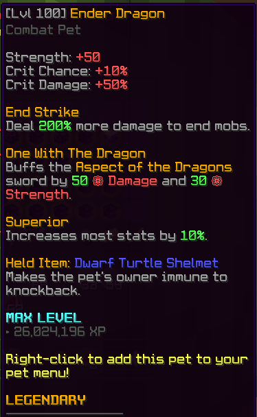 • Level 100 Legendary Ender Dragon Pet (No Tier Boost)