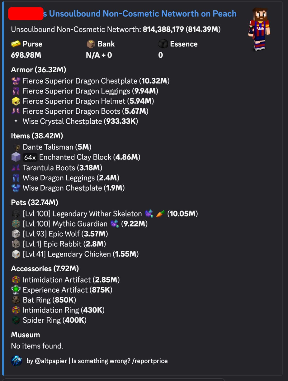 - You can see the profile on the screenshot or there -> https://sky.shiiyu.moe/stats/Ronis10/Peach