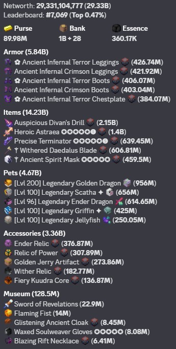 HYPIXEL SKYBLOCK ISLAND / PROFILE WITH NETWORTH 27B & 30 MINION SLOTS 22.5 B UnSoulBound